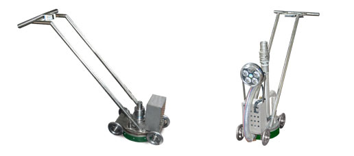 漢諾公司的平面清洗裝置中,為用戶提供了清洗手推車設(shè)備。手推車底部裝有小輪,可以很容易地用手推著走,手推車配有小型電動機(jī)為底部旋轉(zhuǎn)噴盤提供動力,依靠旋轉(zhuǎn)射流的旋轉(zhuǎn)動力,可以使清洗效率得到更充分的發(fā)揮。